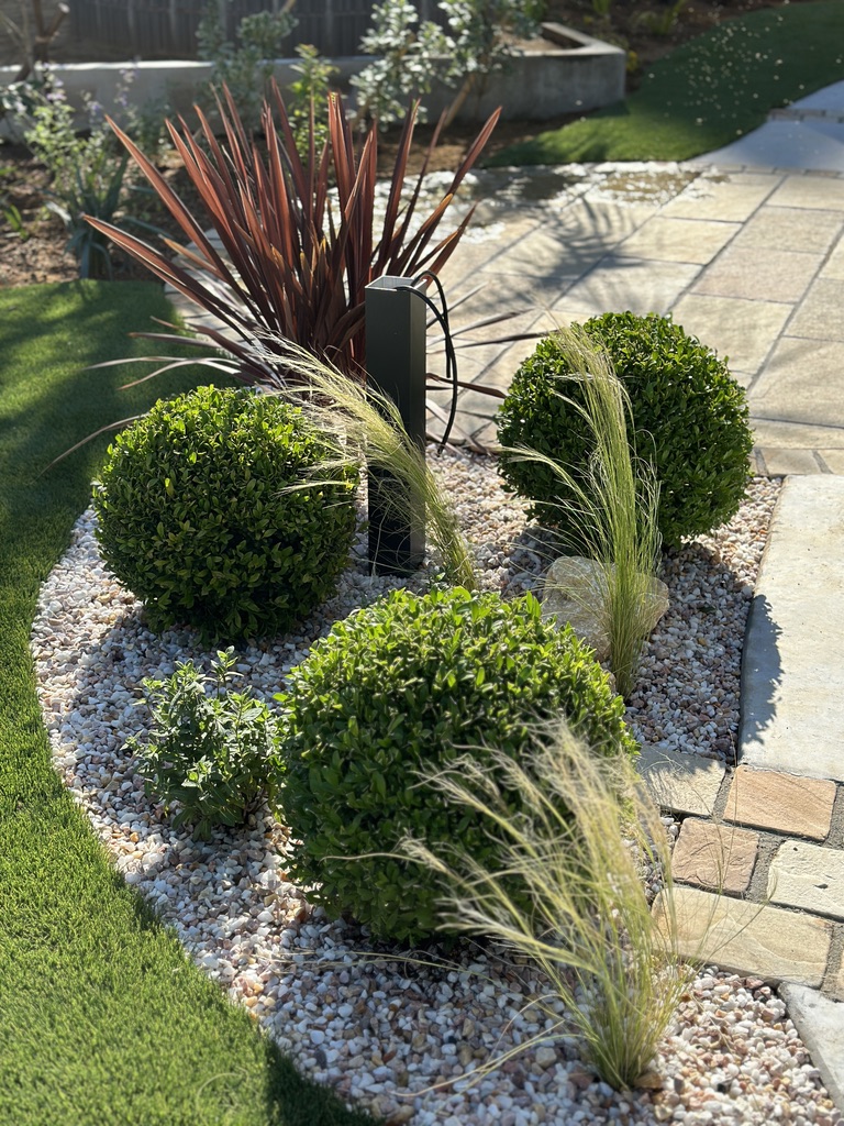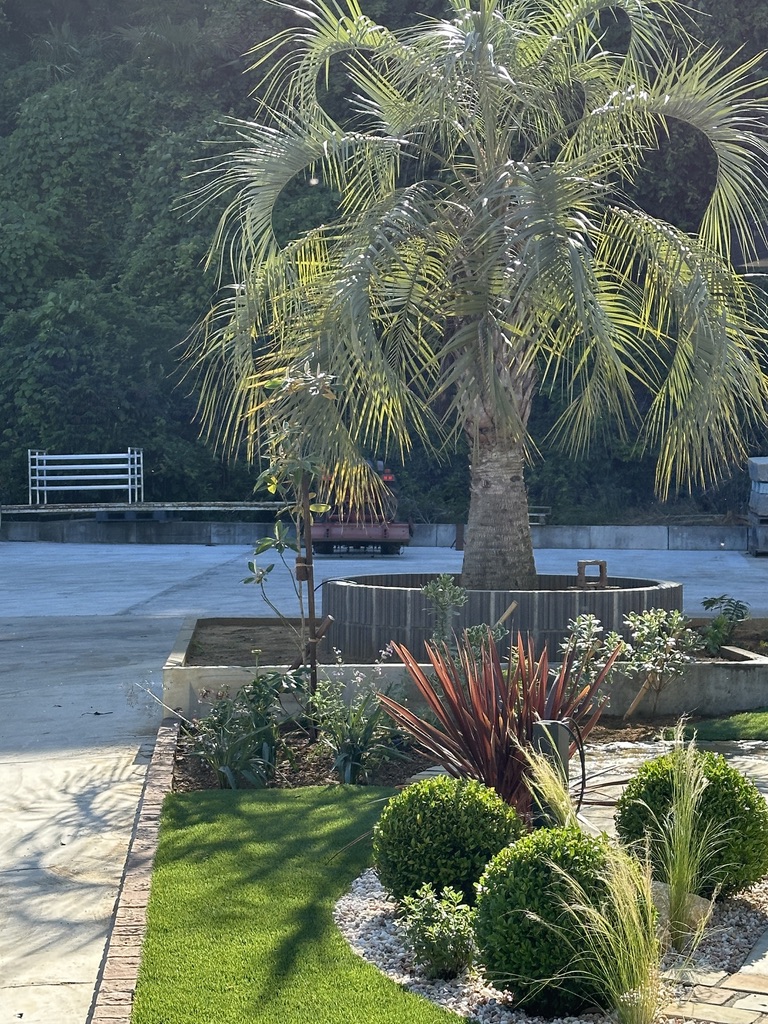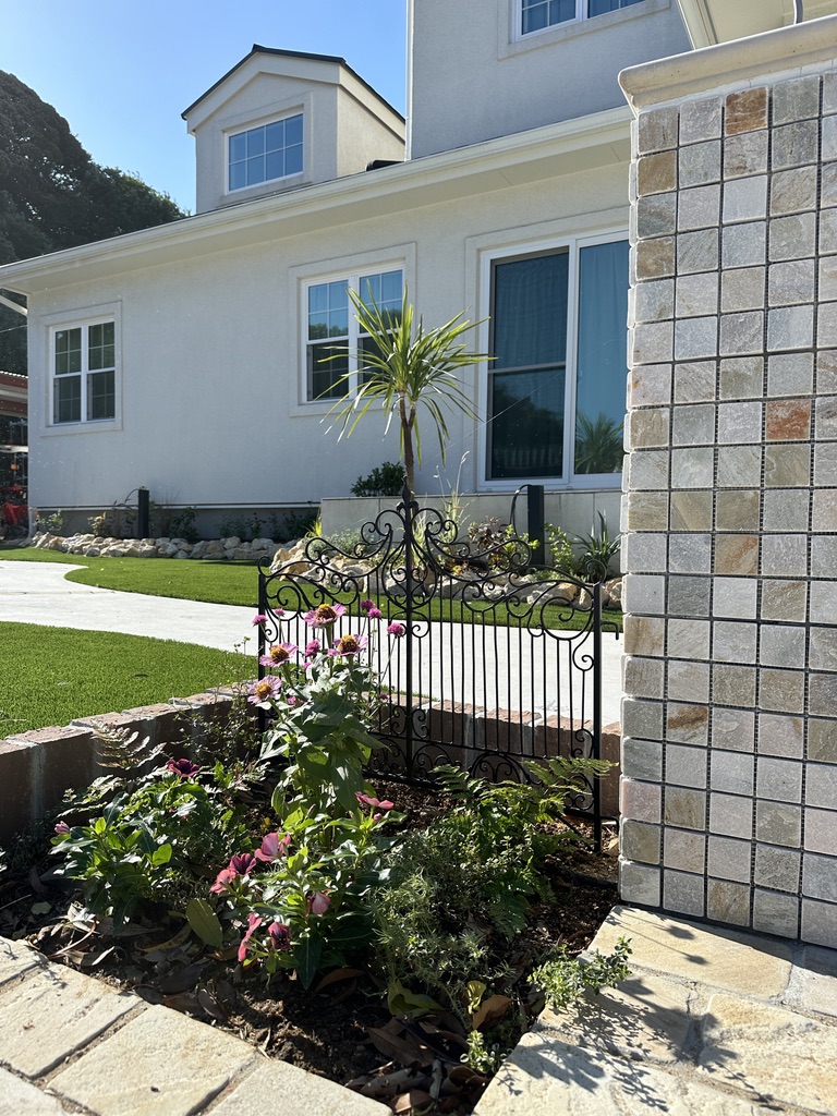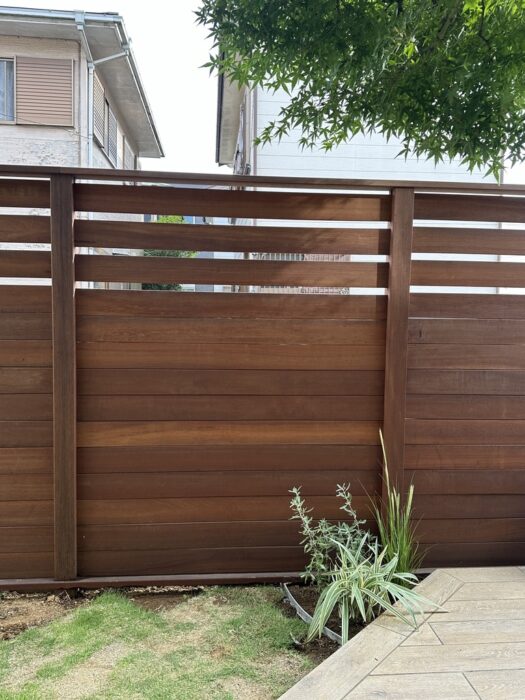 経年変化により壊れてしまったフェンスを、アイアンウッドの木製のフェンスに替え、一部をいちごなどの、食べられる植物を育てられるレイズドベッドにし、さらにハーブやブドウを植えました。