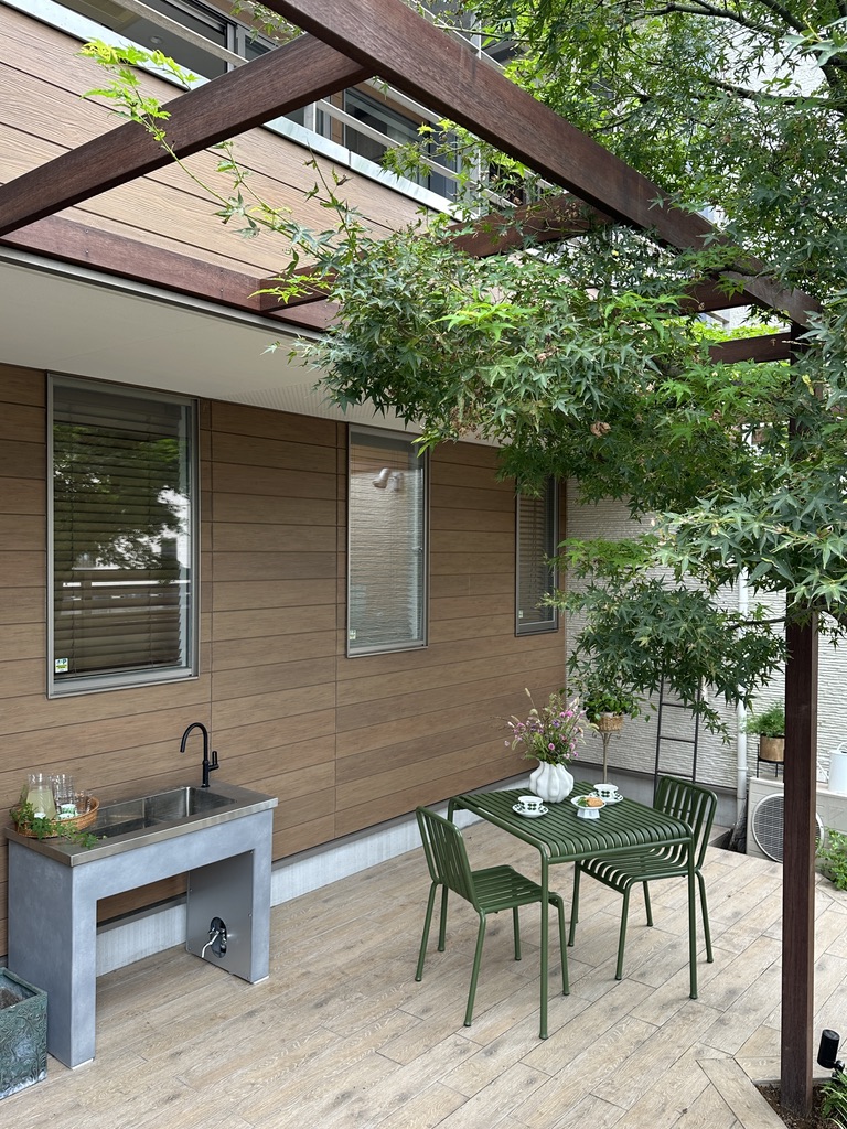 雨の日も遊ぶことができるようにと作られていた既存のエリアは、既存のアルミ製品で作られておりましたので、どことなく無機質な雰囲気があったんです。