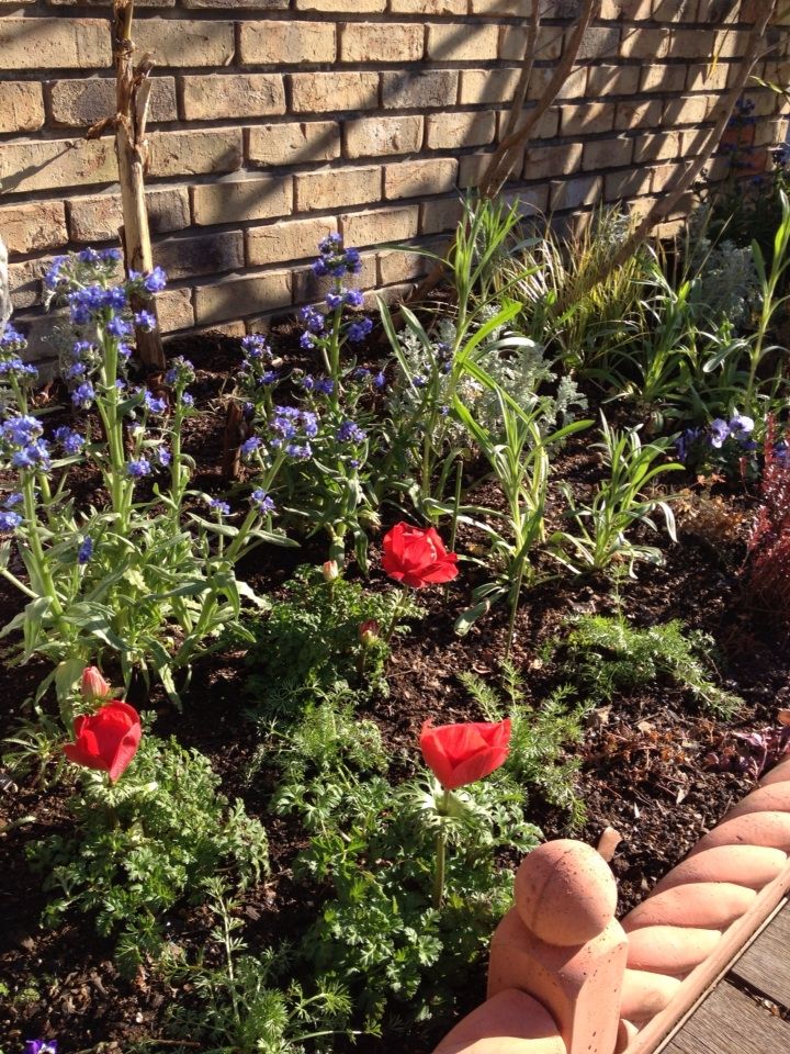 この時期大好きな真っ赤なアネモネと、アンチューサのブルーのコントラスト。