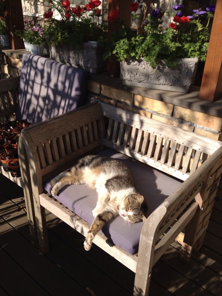 昨日撮り忘れてしまった写真を撮ろうと、オフィスに向かうと、特等席に常連のお客様が。