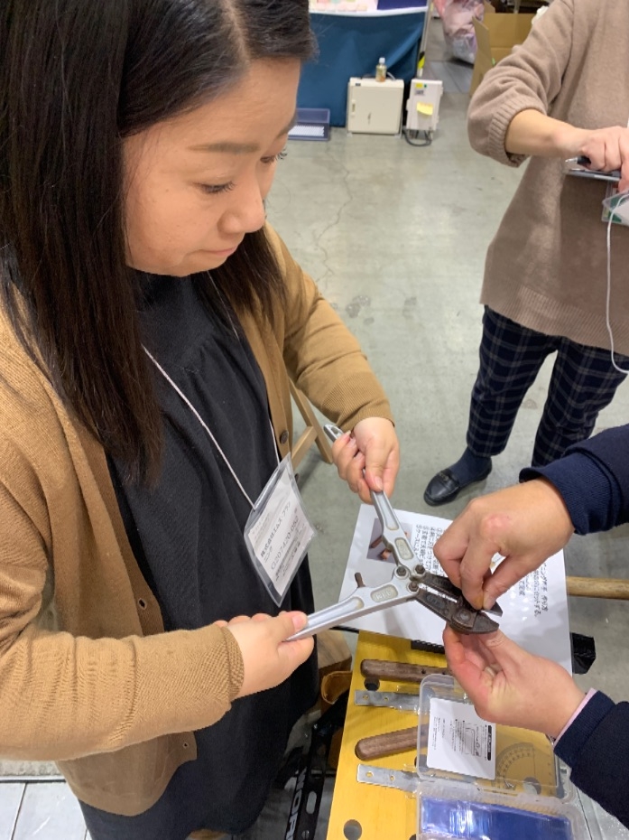 職人さんの手がね、かっこよかったのなんのって。刃物屋さんであり、鍛冶屋さん。やっぱり、ものづくりをしている方の、あの爪が短くカットされてて、力仕事のせいで、爪と指がホントに一体化していて、あ、きっと、ここ、何回も叩いちゃったんだろうなぁ、と思わせるような年季とキャリアを感じて、なんでも作り出せて修理もできちゃうような、生きた道具としての「手」。惚れ惚れします。手のアップの写真撮らせてもらえば良かったなあ。