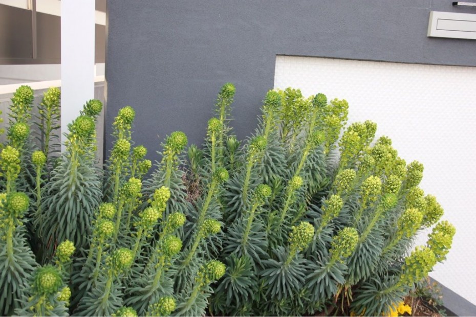 ユーフォルビアは常緑で、特徴的な葉が冬も緑を保ってくれるため、シャープなエントランスのアクセントにピッタリです!