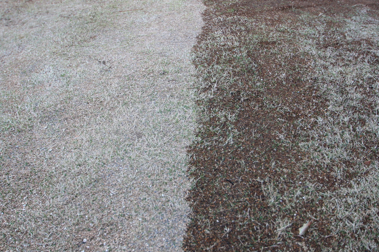③お水やり・・・可能であれば、毎日午前中にお水をたっぷりとあげてください。この時期は、日差しが強く、とても乾燥しています。今の芝生にとって、最高のご馳走はお水です。お水をどんどんあげると、日に日に芝が青くなっていくのが分かるかと思います。
