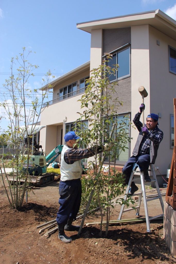 樹木が1本植えられるだけで、工事中だった土地が、ぐっとお庭に近づいてくるので不思議です!