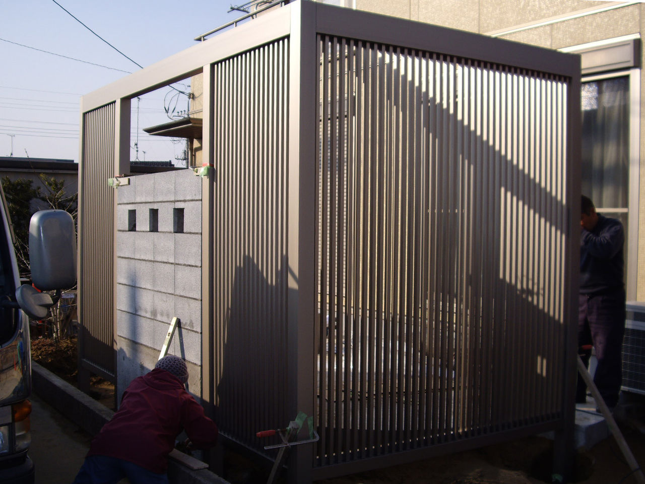 今回のお庭は、プラスGにさらにプラスしてアクセントの壁をポイントにしています。そして、このフェンスの向こうには、プライベートなくつろぎの空間を作製中です。