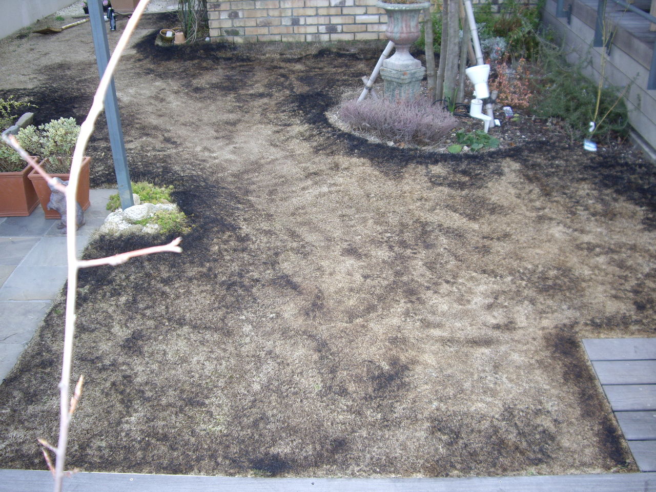 今年は事務所前の芝生(高麗芝)を芝焼きして見ようと言う事になりました。