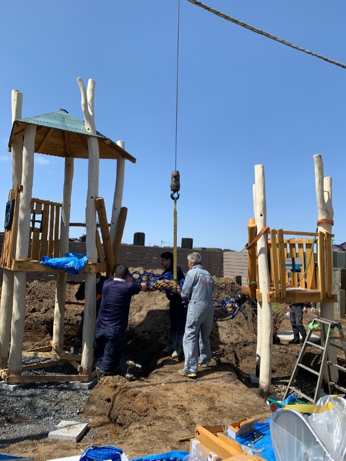 新型コロナの影響で、到着が遅れたりもしましたが、素敵な自然素材のロビニアの遊具が無事届き、ひとまずとても嬉しいです!