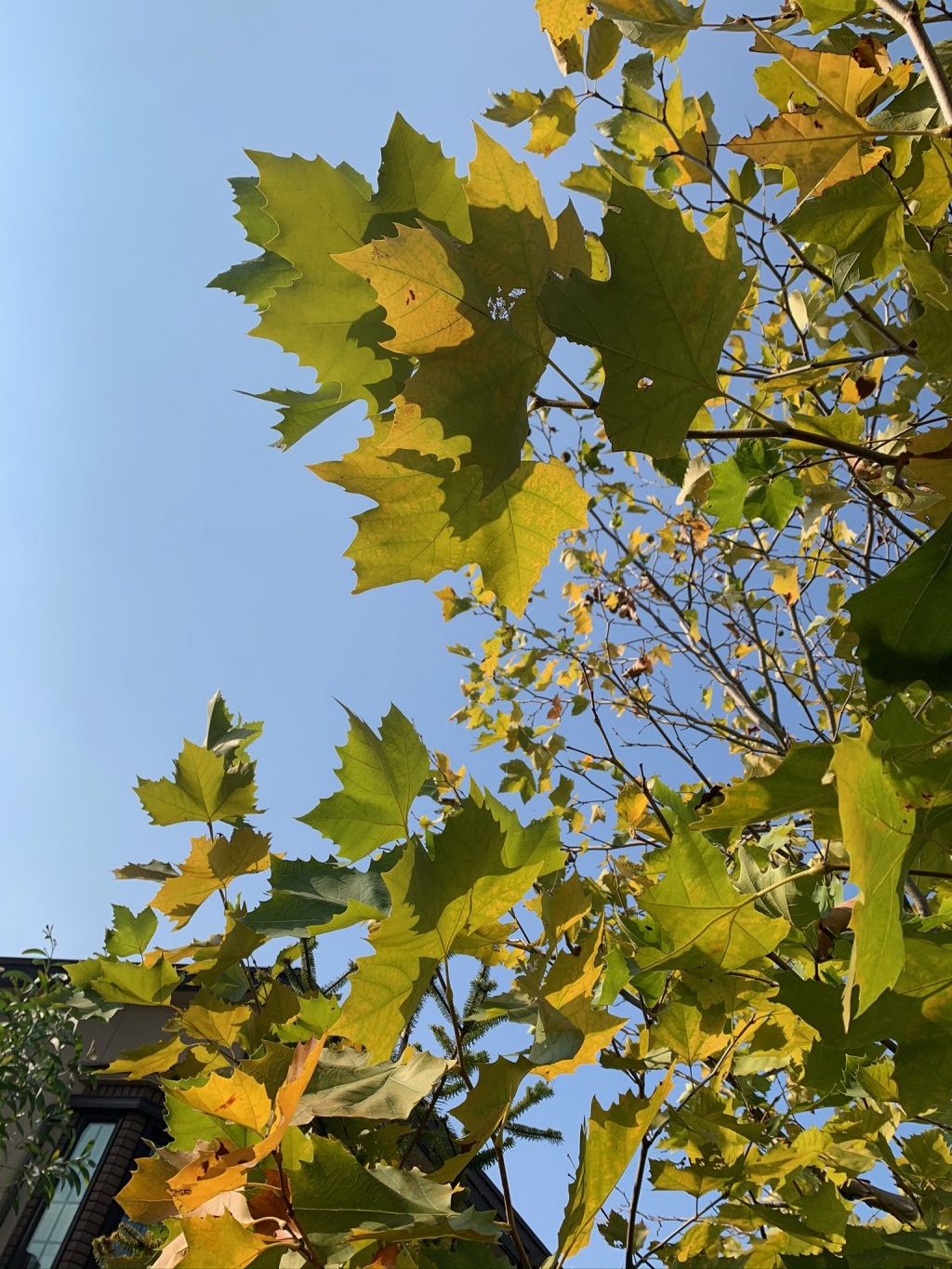 ショップに降り注ぐ光を受けて、プラタナスの葉っぱがそれはそれは綺麗でした。