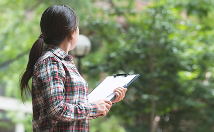 実際に土地の高さや土室、隣地との関係、日照や接している道路の交通量や周りの環境など、詳しく現地調査を行います。また、お住まいの地域環境に合った植栽のセレクトがローメンテナンスなお庭づくりでとても大切なポイントになります。