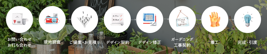 ご要望やご予算などをお聞かせ頂き、お客様に一番合ったお庭をデザイン性とコスト面を考慮しながらご提案させていただきます。概算見積り及びデザイン案をご検討いただき、デザイン契約後に、さらに詳しいお庭づくりのお打ち合わせへと進んでいきます。