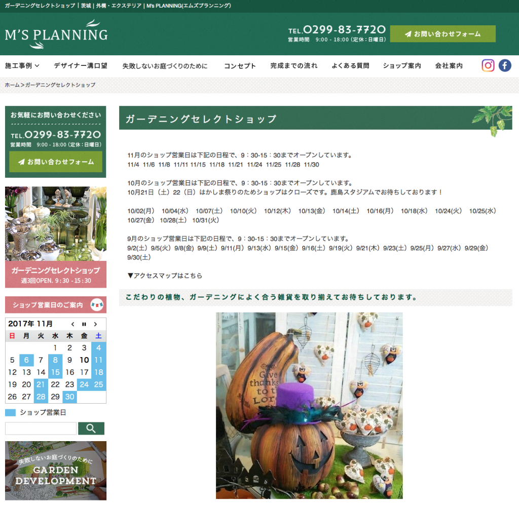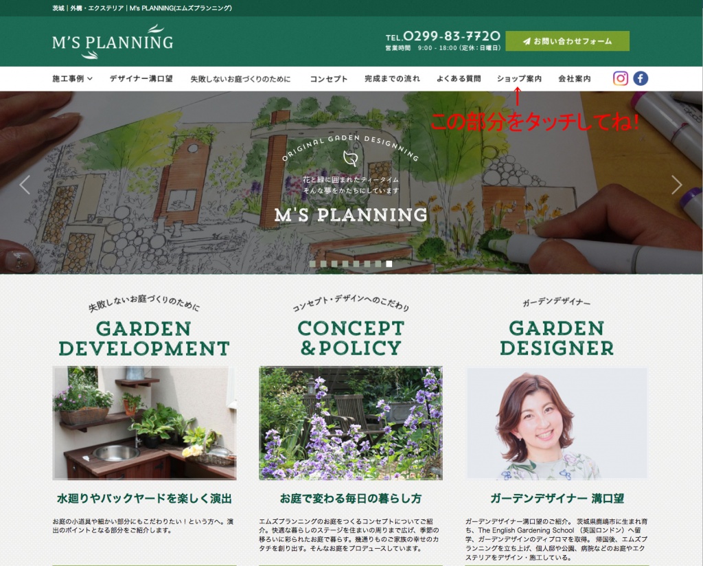 エムズ・プランニングのトップページを見ていただくとこのような画面になります。
