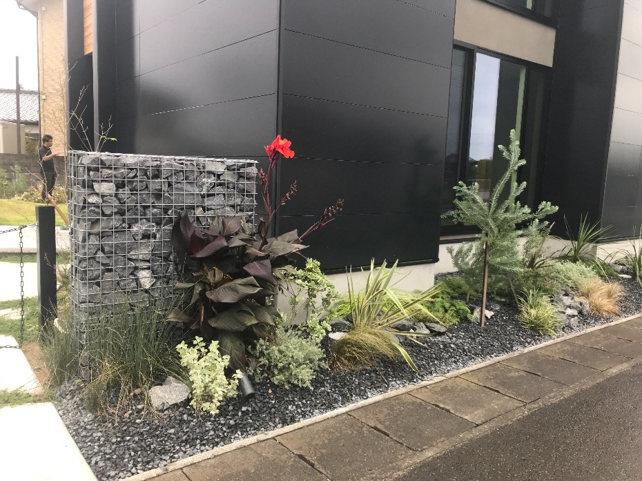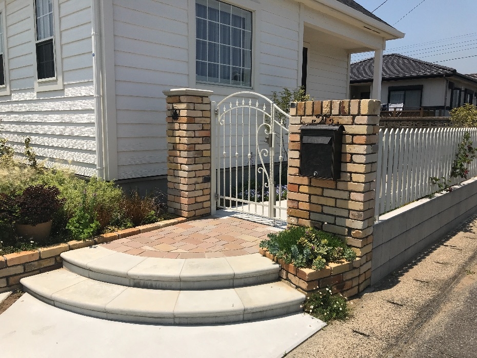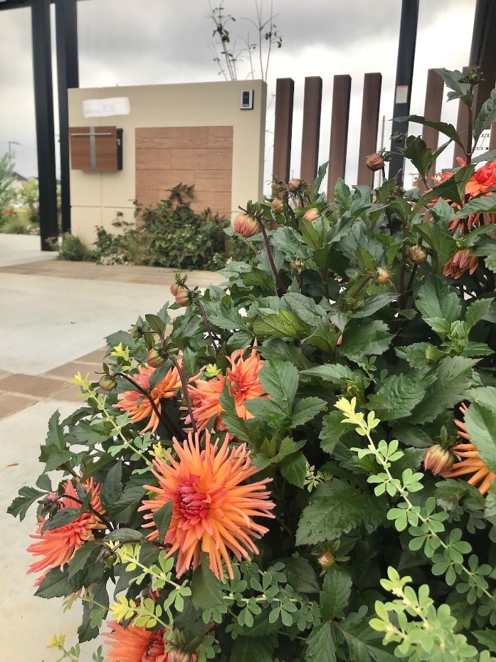 カースペースと門柱や壁の間に設けた、幅40cmの土のスペースに植えた植物たちも、こんなにモリモリ大きくなりました!この後、私にちょっとカットされちゃいますけどね〜。