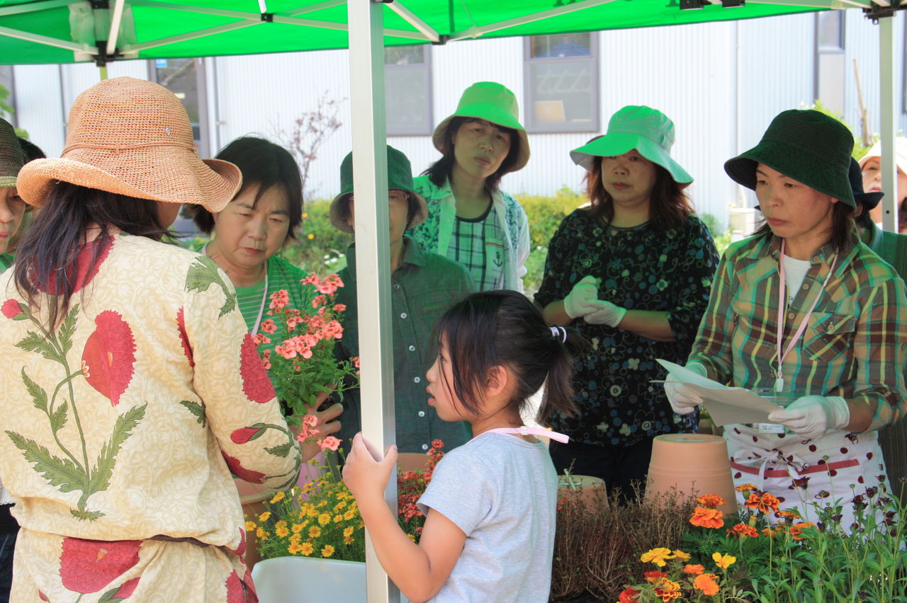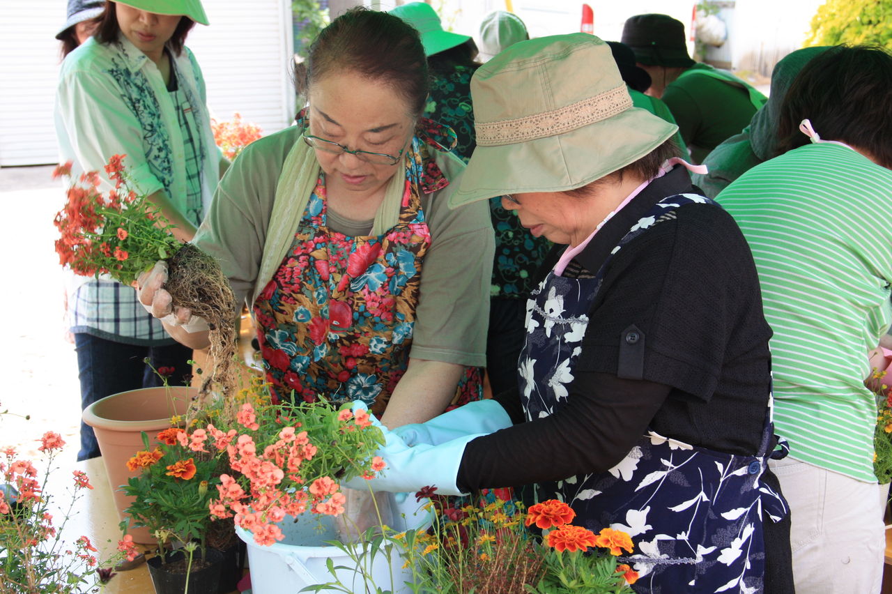 根洗いという方法で寄せ植えをするのは皆さんはじめてとのことでしたので、植え方の説明もとても熱心に聞き入ってくれていました。