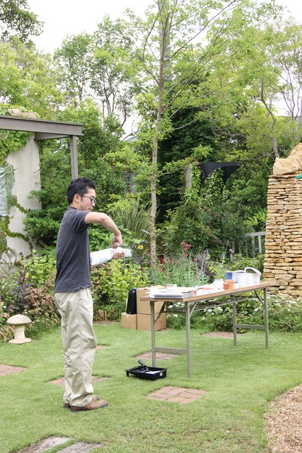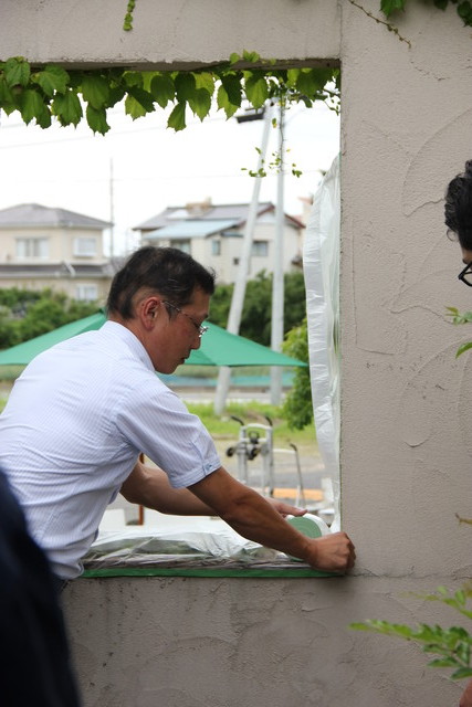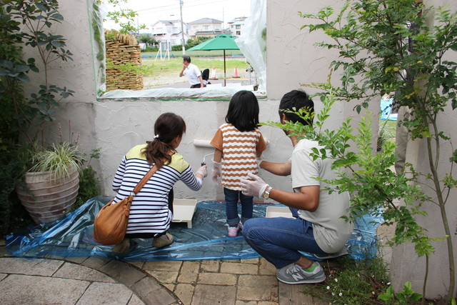 そして午後からは、モデルガーデンの壁を使って、汚れてしまった門袖のリニューアル方法を、誰でも簡単!DIY方式でご案内。