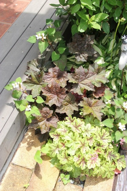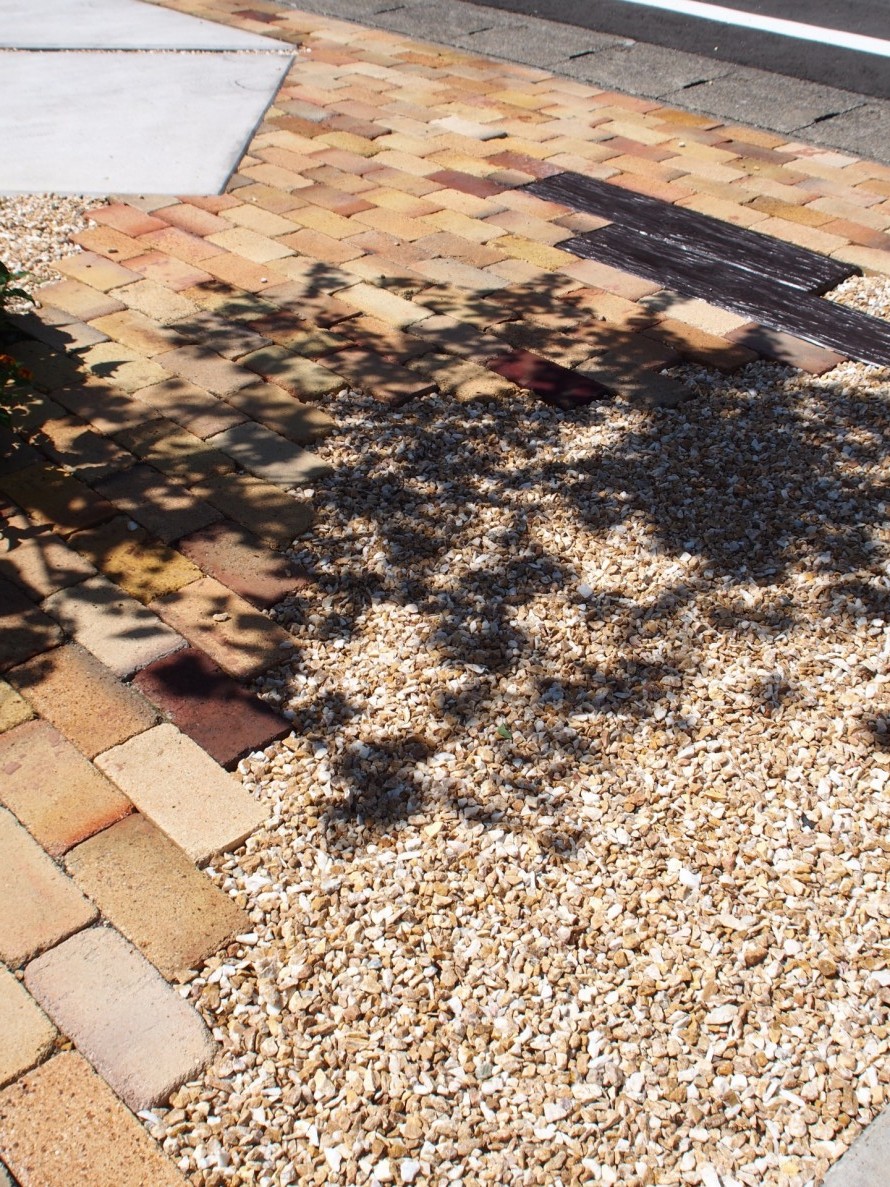 アンティークのレンガと、化粧砂利と、ナンキンハゼの木陰。