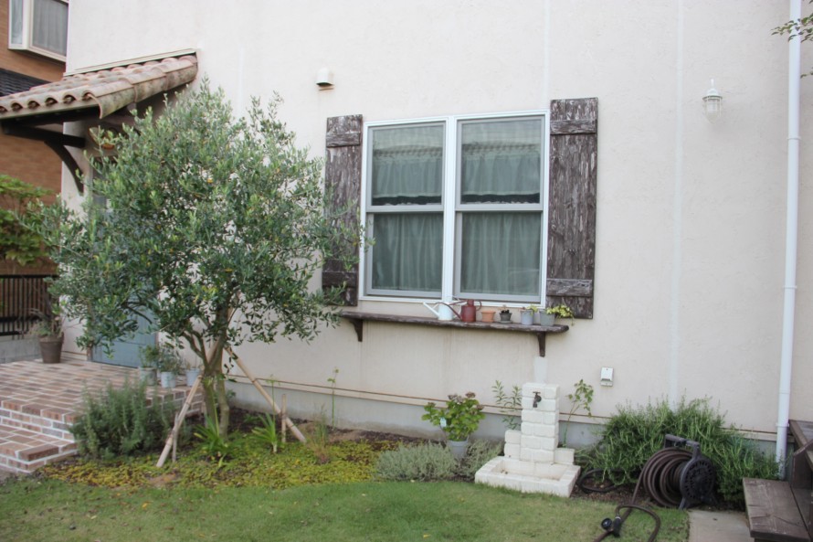 フランスの田舎町に迷い込んだかのような素敵なお家に合うように、可愛らしい白を基調としたレンガ調の立水栓をセレクトしました。