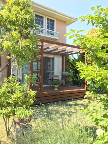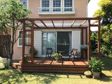 神栖市でアイアンウッドを使い、デッキとパーゴラを作らせて頂いたK様のお庭のご紹介です。今回のK様は実はお庭の工事は3回目。でも、エムズプランニングでの工事は初めてでした。ですので、お話しを頂いた時も、お庭の違うエリアは他社で工事してあるんだけど大丈夫かしら?というご心配をお持ちでした。誰にお庭のデザインを依頼し、どの業者さんでお庭の工事をするかというのも、ある意味出逢いだと思います。その時自分が作りたいお庭のイメージをしっかりと持っていると、きっとそのお庭を作るのに1番適した「誰か」と出逢えるはず!